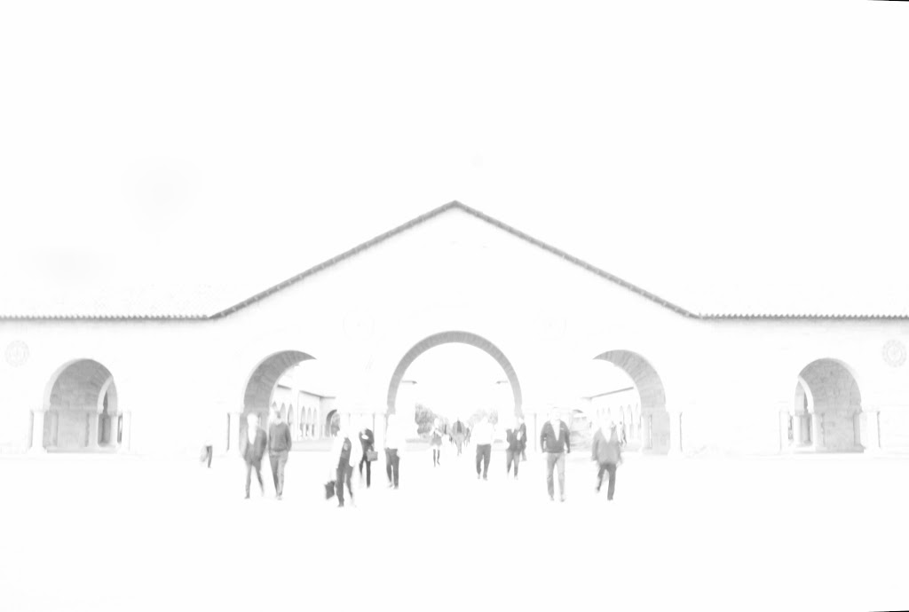 In this photo, I harnessed overexposure as a tool to highlight the lines that define the form of the Stanford quad. By removing all other details, such as the texture of the sandstone and cobblestone, the clouds in the sky, and faces of the pedestrians, the viewer must focus attention only on outline of the structure and on the figures emanating through the central arch. | ||