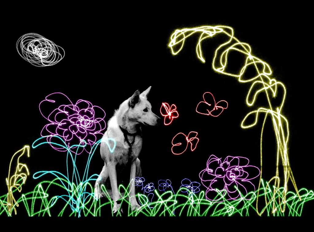 I took a photo of this white dog a while ago as it was waiting outside a store for its owner. It looked really bored, so I decided to make its world a little more exciting.