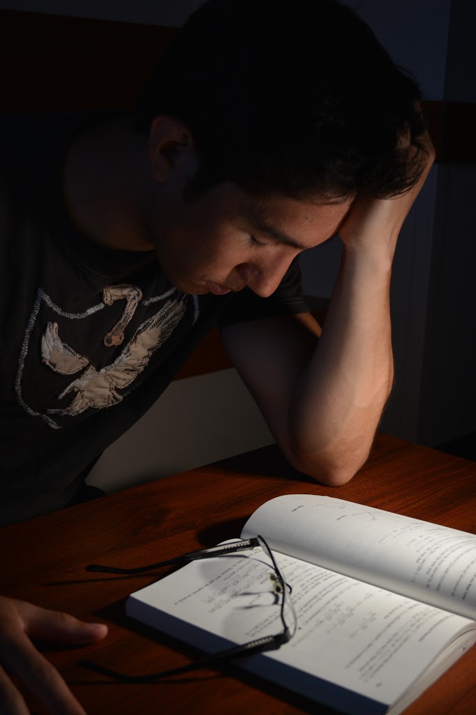 This is a photo of me in a frustrated stance. It was supposed to illustrate my state of mind while most of my time here at Stanford =). A lot of problem sets in mathematics left me struggling for hours on just a few problems. For the set up, I got my old Math 171 textbook, and got my glasses. We used a flash for the key light, and took this next to a window which was used for a fill light. We wanted to flash the textbook, signifying the emanating knowledge. My face was supposed to be relatively dark in comparison, to symbolize my struggle to acquire the necessary intuition to solve the problem at hand. | ||