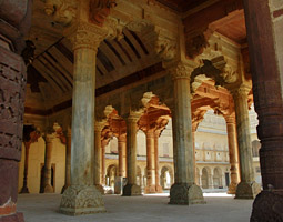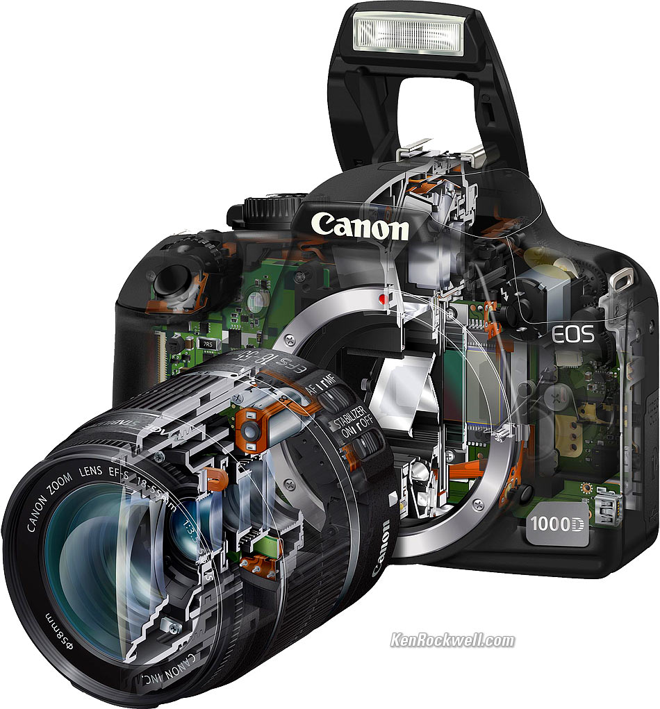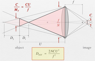 What's inside a digital camera? This is a cutaway view of the Canon Digital Rebel 1000D. Here's a more instructive diagram, showing the main optical paths. We'll take apart a camera in class. Most photography books talk about depth of field and depth of focus, but few of them give a formula for it. Here it is. N is the F-number, f is focal length, C is pixel size, and U is distance to the scene. We'll study this formula in class, and you'll be asked to experiment with depth of field effects in your weekly photographic assignments. This is a tough shot, because the arcade ceiling is much darker than the courtyard beyond. I solved it by combining three exposures, an idea called "high dynamic range" imaging. You don't need a special camera for this; we'll try it in class. Here are more shots from India. Dorothea Lange's iconic portrait of a migrant mother during the Great Depression. We'll survey the history of photography and study the work of good photographers.