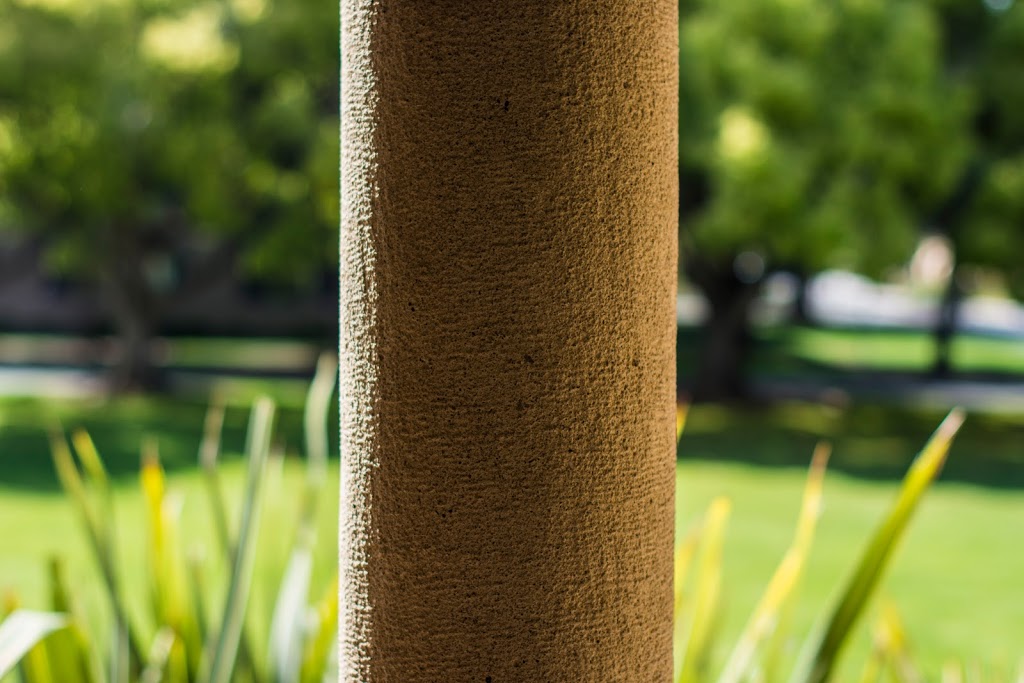 This photo fulfills the badly composed criteria, with the column placed directly in the center of the photo. Especially with the light hitting one side of the post, it would've made sense to place it on either side of the image, as an asymmetrical location would play well with the asymmetrical nature of the stone. | ||