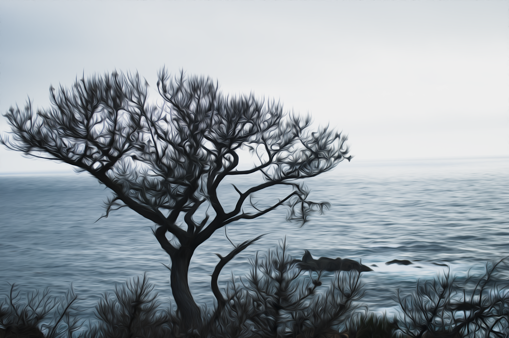 I took this photo at a vista point on Highway 1. I took this shot because I really liked the composition of this frame. The cloudy weather also helps to create a feeling of coldness and loneliness, which echoes with the view very well. | ||