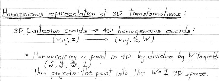 Thus, the 3D Cartesian coordinates occupy the W = 1 three-dimensional subspace