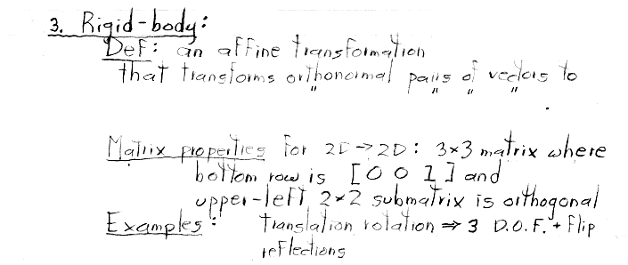 The columns of this chart are assumed to be in the same space. In particular, if we are talking about rigid, affine, and projective transformations in Rn-1 with respect to the taxonomy, then the linear column also refers to linear transformations in Rn-1, not in Rn.