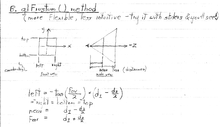 If you want to play with the program I used in class to demonstrate changing the field of view (zooming) versus changing the distance to the scene (dollying), then log on to a firebird or raptor and type: