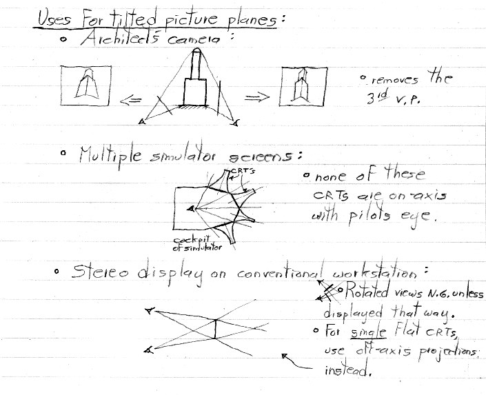 One further complication. When a polygon is clipped to the viewing frustum (a process we'll learn about shortly), vertices that are outside the frustum are discarded, typically to be replaced by new vertices that lie on the frustum boundaries. When this happens, the new vertices must be given normals, texture coordinates, and colors. This is done by interpolating these values from the vertices lying on either side of the frustum boundaries. This interpolation occurs before homogenization, so simple linear interpolation is used.