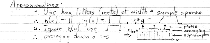I don't have time in this course to show you what supersamping and averaging down looks like in the frequency domain. If you're interested, look at this handout from CS 348B.
