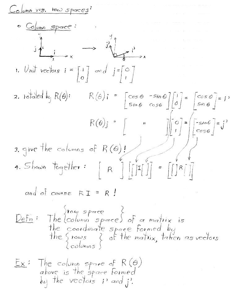 These unit vectors are also called the standard basis vectors. Restating the result shown above, any matrix transforms the standard basis vectors into a set of vectors that form the columns of the matrix.