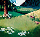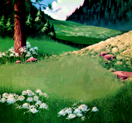 The third image is an optically scanned hand-painted cartoon background. To my eye, it looks fine at 5 bits, but begins to show artifacts at 4 bits. This reduction in the number of bits is at least partially due to the more random nature of the hand painting.