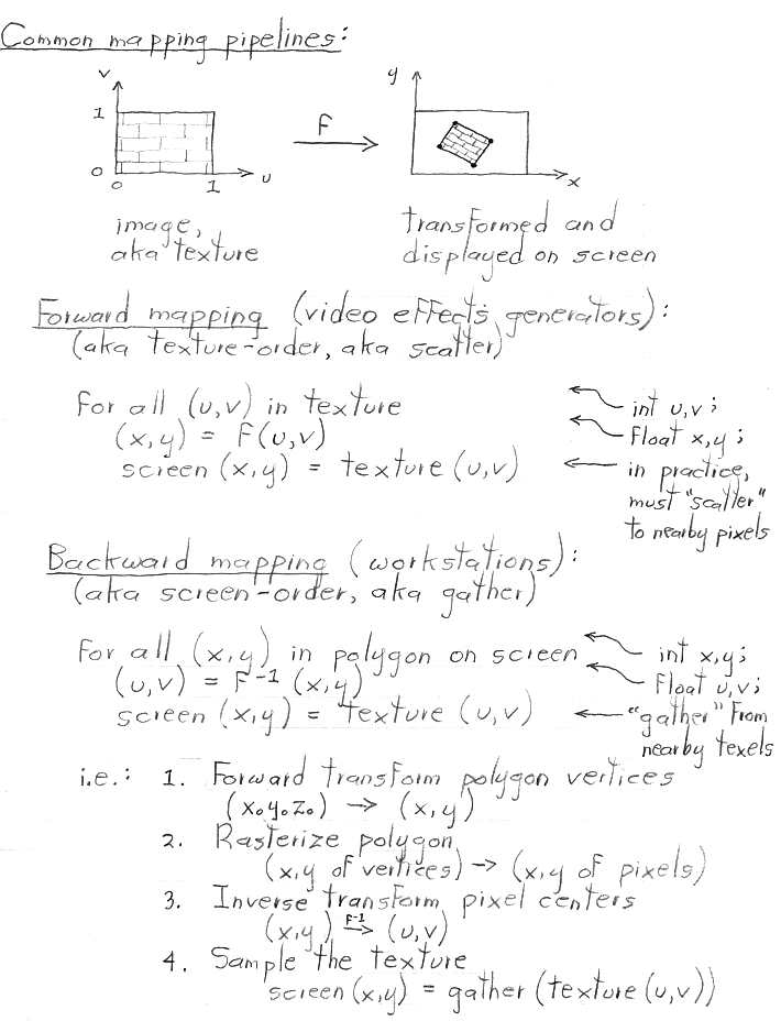 I didn't cover these other filters in class, and I won't hold you responsible for them. There is some discussion of them in Paul Heckbert's article, which I handed out. If you're interested in reading more about texture mapping and filters, Heckbert's Master's thesis (available from his home page) makes excellent reading.