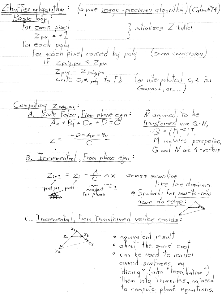 - Zbuffer algorithm