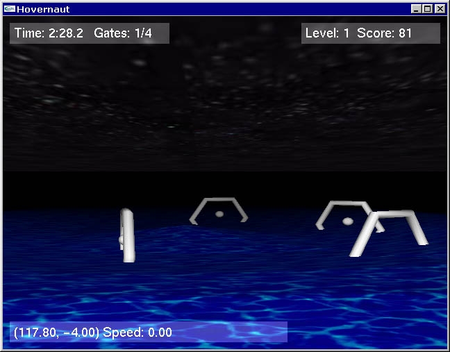 The final project for CS248 was to write a 3D video game. To help inspire our students to delve deeply into the wonderful world of graphics, we also held a public competition, with a panel of expert judges selecting the best game from a set of 8 finalists. The winning group won a trip to Siggraph 2001 in Los Angeles, while second and third place won a free dinner at Il Fornaio. We also had a "wackiest, most creative" prize consisting of a Sony PlayStation 2 video game console system, donated by Sony. In addition, all of the finalists were awarded their choice of computer game donated by Electronic Arts.