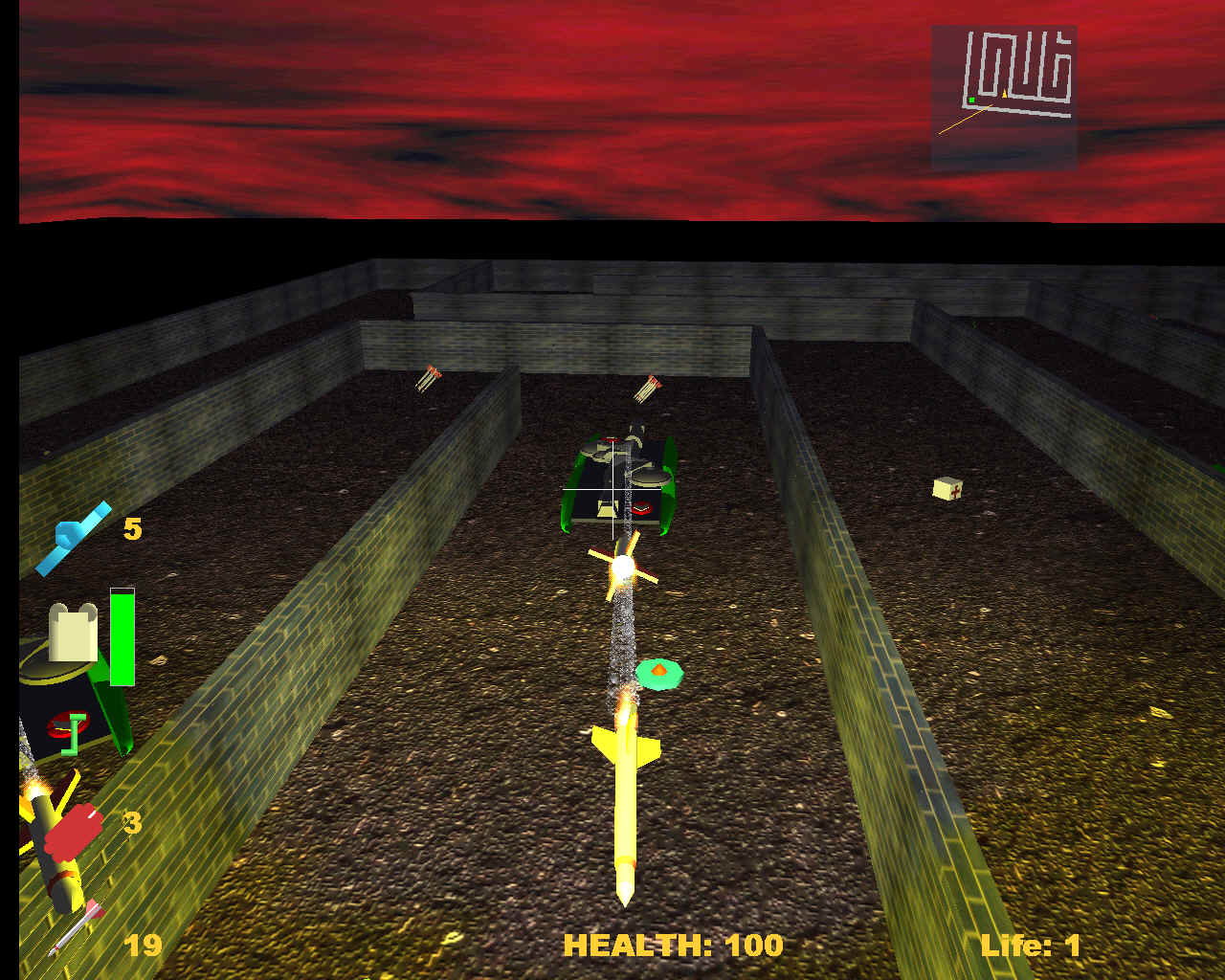 destroy a number of enemy tanks within a maze with a rocket launcher and a