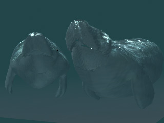 This photograph shows all the lighting effects that we are trying to implement in our final project. Caustics are clearly evident on the skins of the manatee. The addition of bumps on the muzzle and creases on the neck and fins can be modeled but would be easily simulated with the appropriate bump map. In addition there is alot of light scatter in the image although we probably won't attempt an accurate recreation of this effect.