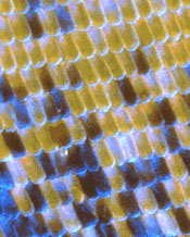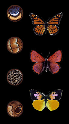From a developmental perspective, the formation of a butterfly wing pattern is the result of a complex coordination of processes, timing and genetics. The mechanics that determine the scales, pigmentation, pattern element size, shape, position, and symmetry, ultimately determine the pattern. Experiments have revealed pattern determination is established and finalized within the first few days after the caterpillar enters its pupal stage. At this time, the wing views, the wing shape, the epidermal membrane, pattern elements and coloration are determined. At the root of the pattern development mechanism is the diffusion of a morphogenic substance through the epidermal layers. These diffusions, controlled by activating and inhibiting enzymes, result in gradients of the morphogenic substance. Reaction thresholds based on the concentration of the morphogen determine the contours of the actual pattern elements. Some pattern elements are formed from the source position of the morphogen while others are initiated by the absence of the morphogen (concentration sink). The exact pattern shapes are usually formed from the contours generated from the addition of multiple morphogen gradient sources or inhibitions. Controlled by genetic and environmental factors, the final pattern might best be described as a developmental freeze-frame at the beginning of pupal stage when the pattern finalized. (source: http://www.bugbios.com )