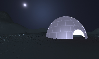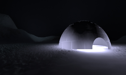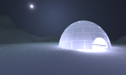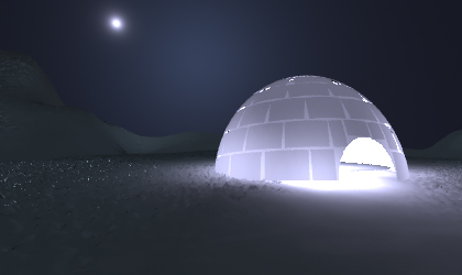 We used different transluscent material values for snow heightfield which is very dark transluscent material and allows very less amount of light to pass through it and igloo model material which allows more light to pass throught it to get our desired effect for each.