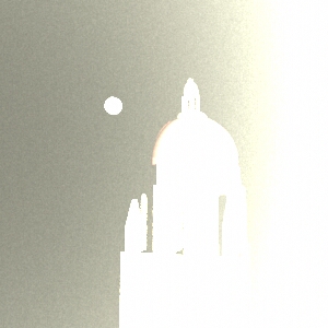 First, we created images of the moon and the tower rendered separately. We had to use different sun intensities