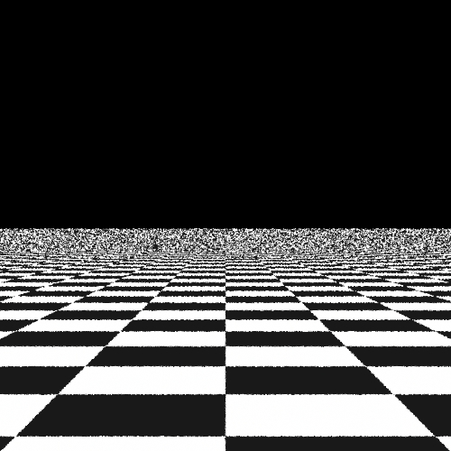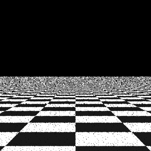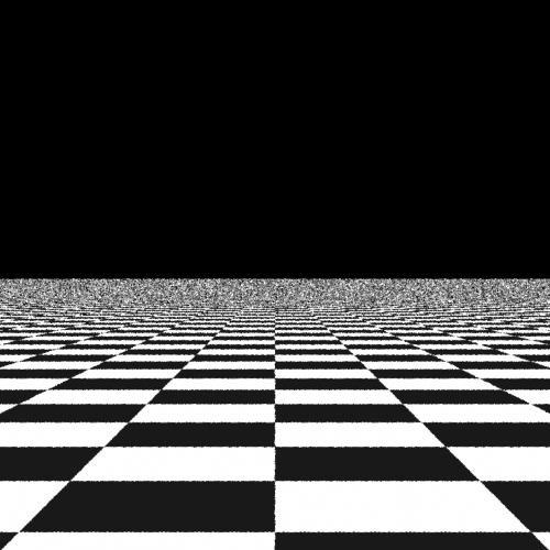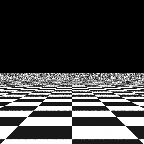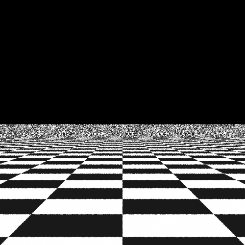 Here we render a simple scene of checkerboard, to see the aliasing effect of these sampling patterns. Here we will compare the point sets generated by our algorithms and those generated by the three samplers provided by lrt. The scene is rendered using the perspective camera, so it only uses the 2-d image samples, not the time samples and lens samples. There're five algorithms being compared below: the brutal force (jittered), the Delaunay triangulation, the best-candidate, the stratified, the low discrepancy.