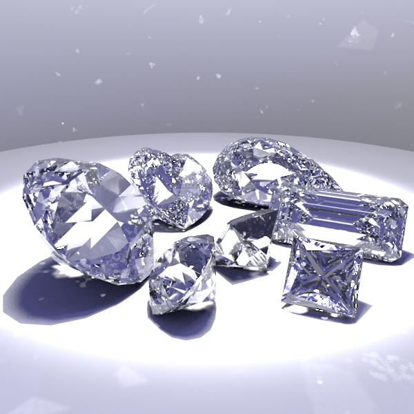 I got my models from 3D Lapidary, opened the DXFs in Maya and exported them to OBJ. I used a tool I wrote (included in the source) to convert from OBJ to PBRT.