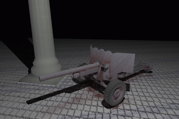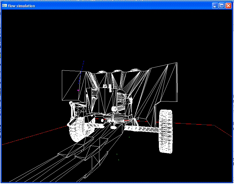 A flow simulator is built to simulate the flow pattern. Water is modeled as a particle which moves on a surface. Because the canon model we got had several meshes, the simulator had to work with arbitrary number of meshes. The hard problem was to find an adjacent triangle as a particle move on. Instead of building a new scheme or data structure, ray tracing capability of pbrt was used.