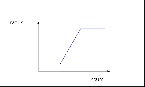 Here is a mapping used to calculate radius of sphere given the contact counting. The triangle which is contacted more often will have larger sphere on it.