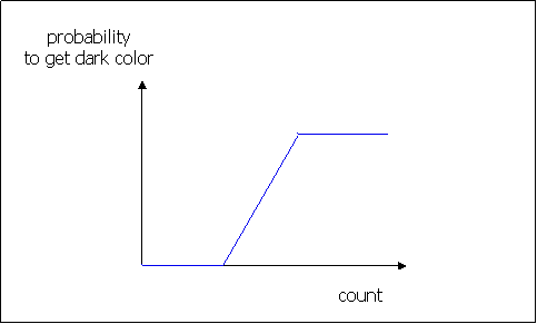 To give more variety on the color of stain, two different colors were used - normal color (0.25, 0.1, 0.1) and darker color (0.15, 0.1, 0.1).  Each sphere randomly choose darker color. The probability increases as count increases, to give a darker color on dense stain region.