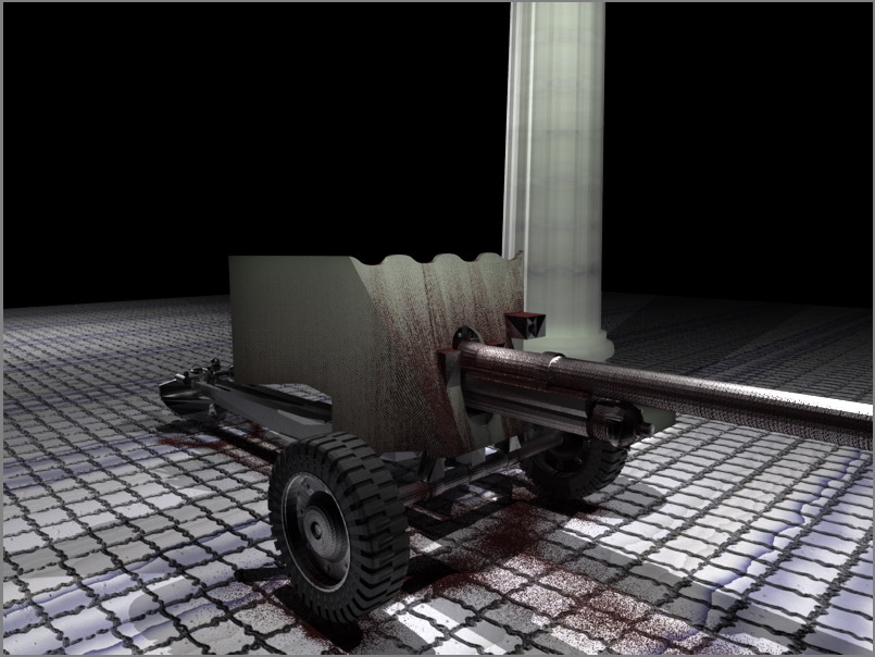 Here is a final image. Marble texture built in pbrt and bump mappoing were used to render ground.