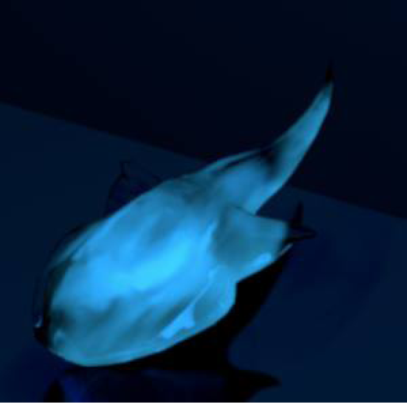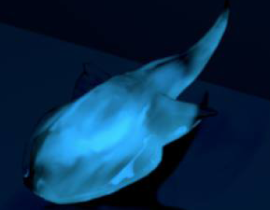 Chris and Forrest rendered a bioluminescent fish using multi-scattered light with volumetric photon mapping. [