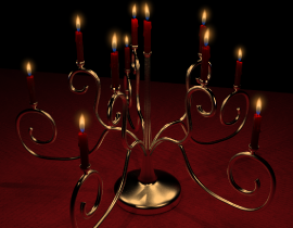 Ben used subsurface scattering and volume rendering to generate candles and flames. [