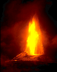 The lava particles are rendered as polygonal approximations to spheres.