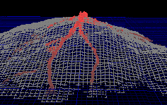 The volcano was represented as a 2-D grid. For each square of the grid,