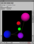 The spheres can be interactively moved by a click-and-drag interface: but first press the small arrow button on the side of the main window. Also, the viewpoint may be interactively changed: press the small hand button first. These aspects of the user interface are provided by the Open Inventor toolkit, documented on-line: just press the small "?" button.