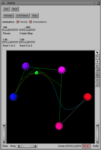 As the particle travels along the curve, a collection of green lines appears; see the example screen above. These lines connect points that were interpolated by the de Boor algorithm while computing the particle position.