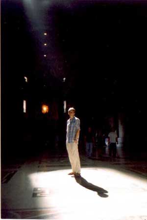 | Here's my version of the heligenschein "holy glory"! This photo, taken in St. Peter's Cathedral, shows a strong beam of light penetrating from an upper window to give the subject a strong "holy glow." |
