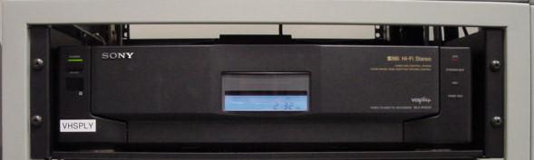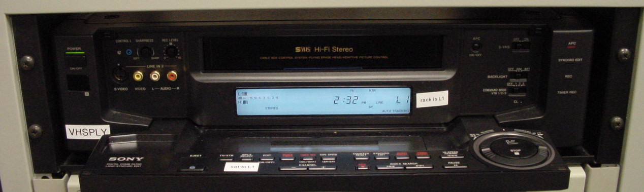 These decks are the workhorse decks, which can record/play in both VHS and S-VHS format. Normally we master on a higher-end deck, and then dub down to VHS for playing elsewhere. See the tutorials for how to make dubs.