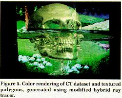 Figure 5. Color rendering of CT dataset and textured polygons, generated using modified hybrid ray tracer. |