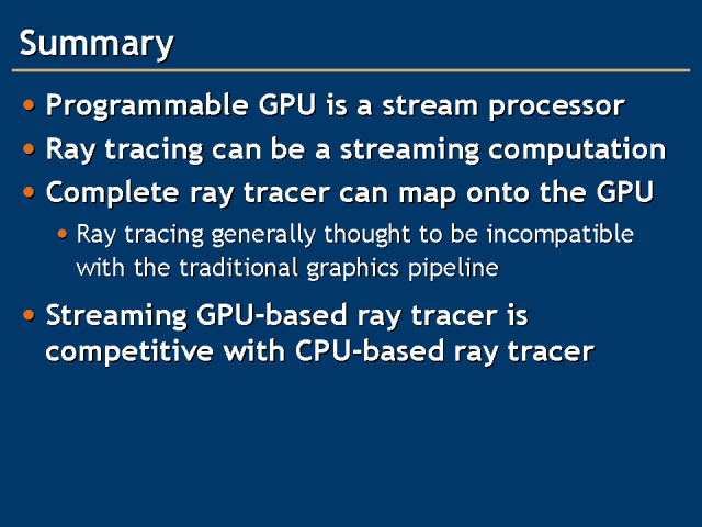 Ray Tracing on Programmable Graphics Hardware
