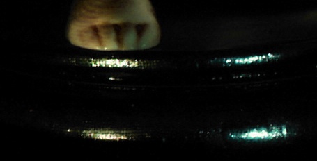 A comparison of the statue base under neutral and colored illumination are shown in figures 11 and 12, respectively. Unfortunately, the Olympus camera operating under ambient illumination was not sufficiently sensitive to capture the illusion, which encompasses the entire base of the statue. However, these photographs at least serve to show the change effected in the color of the specular highlights. Note the difference between the colors of the two highlights in each photograph. This is caused by the differences in color temperature of the two projectors, but as previously noted, the eye ascribes this difference to illumination conditions and the illusion is not destroyed.