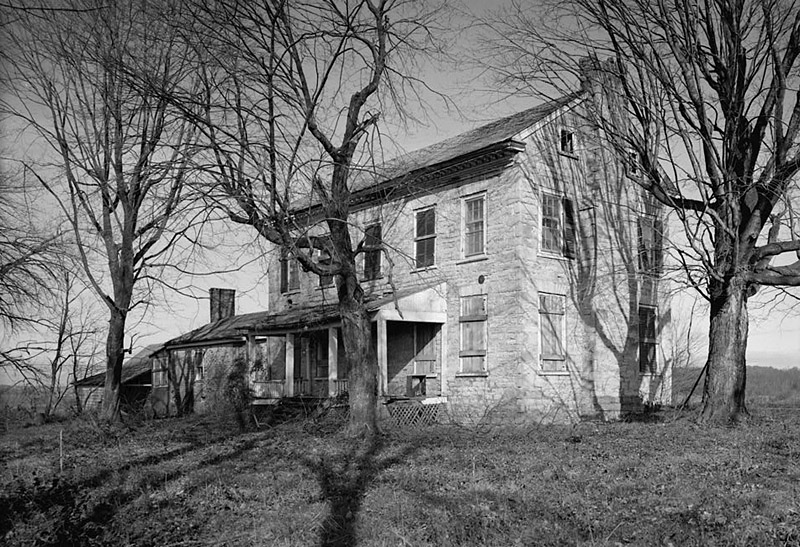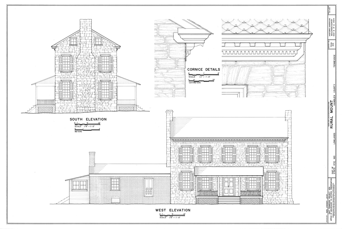 Another building our team measured during the summer of 1974 was Rural Mount, near Morristown, Tennessee. It was built in 1799, reputedly for Joseph Hamilton, who was instrumental in founding of the state of Tennessee. At left is a general view of the house. Although it was abandoned when we photographed and measured it, the stonework and interior woodwork was still in excellent condition. |