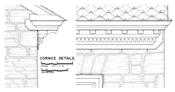 Several months had elapsed since I drew the Roane County Courthouse (see above), and my technical proficiency had improved considerably. Here is a blowup of the cornice details from the foregoing elevation drawing. I am particularly proud of this drawing, which the National Park Service has reproduced in a number of general HABS publications about the recording of America's architectural heritage. |