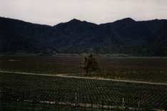 South of Paicines, highway 25 is bordered by vineyards and orchards.