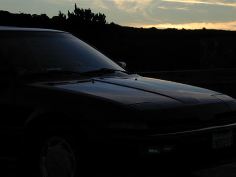 ++ Taken at the same time as the previous, the dawn sky reflecting off the windshield and hood of my car. Dec. 22, 1999. |