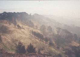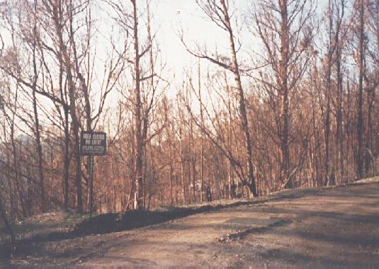 A view from Tunnel Road shows a whole hillside charred barren by the