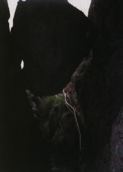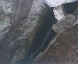 seemed precariously wedged between the walls of the crevice. Photo by
