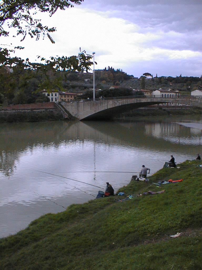 On weekends, the banks of the Arno above Ponte San Niccolo