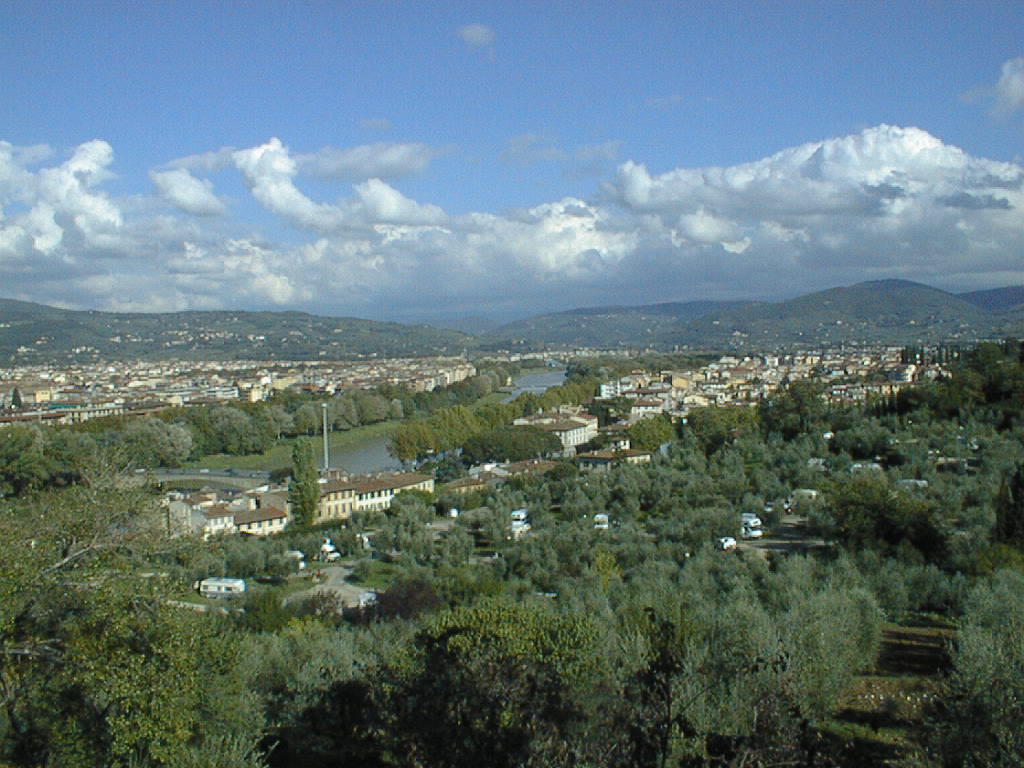 The Arno stretches upriver to the east. The first