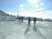 Our group, upon arrival, steps out onto the cold windswept quarry