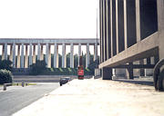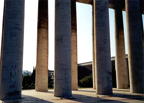 Another sign of the deterioration of EUR. Graffiti letters are spraypainted on the back of the columns.