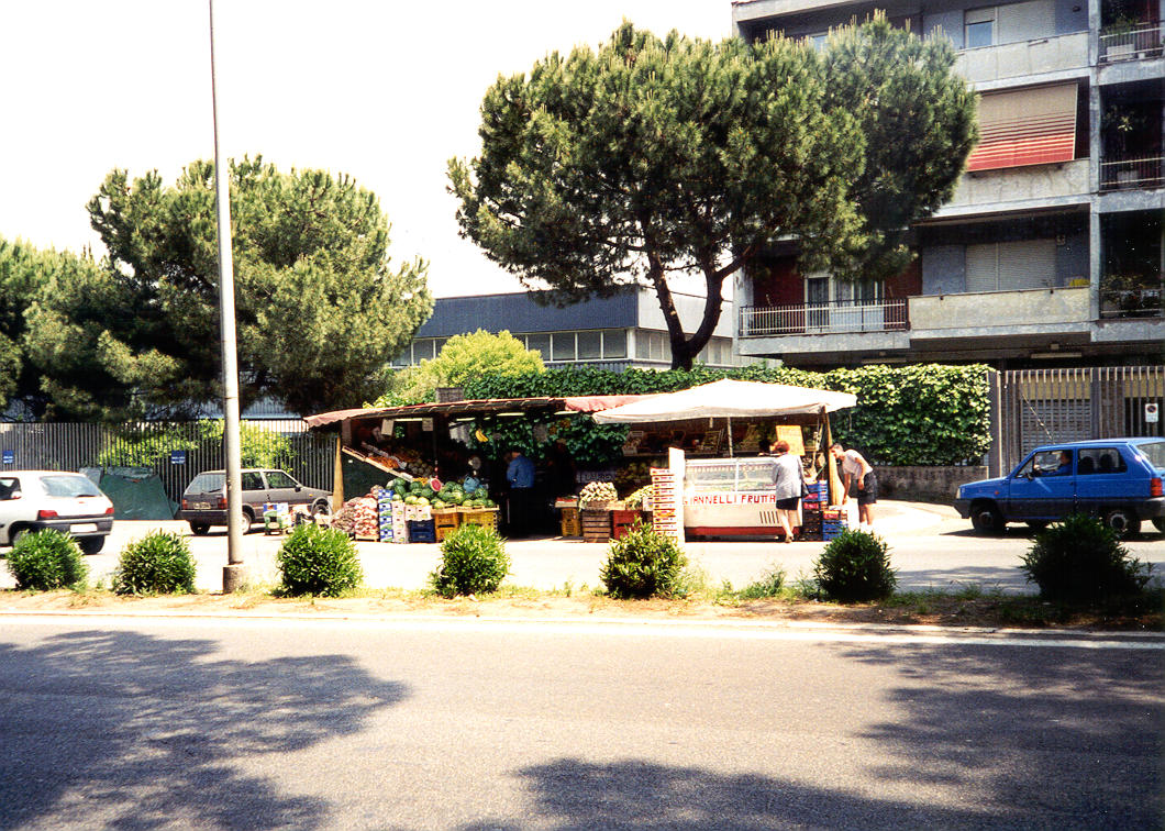 Common in Rome was the roadside fruit stand, which often sold greasy tourist food like bad pizza and doughnuts.