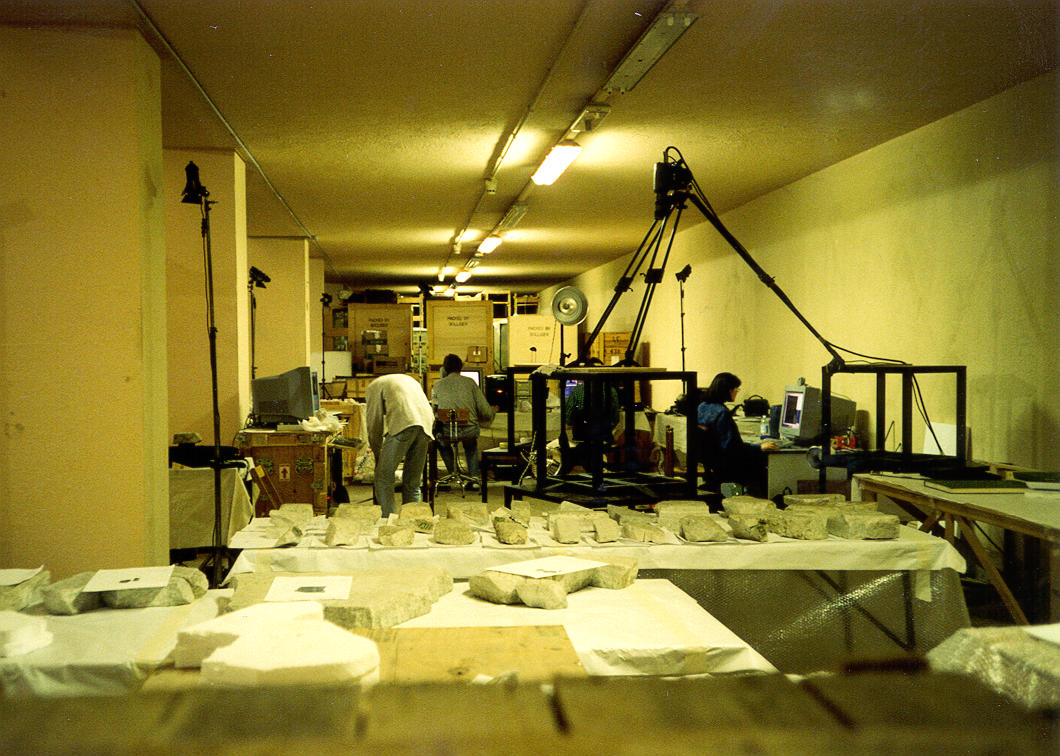 I spent a month scanning fragments of the Forma Urbis Romae, a map of ancient Rome carved into marble slabs, which collapsed and was buried for a thousand years before being discovered buried in the rubble in 1500. Since then, archaelogists have been trying to put the 1300-piece puzzle back together, and we wanted to try computer algorithms to solve the problem. This required, however, that we scan each of the 1300 pieces of the Forma Urbis. So we spent a month in EUR, a suburb built by Mussolini, and intended as the site for a World's Fair that never happened.